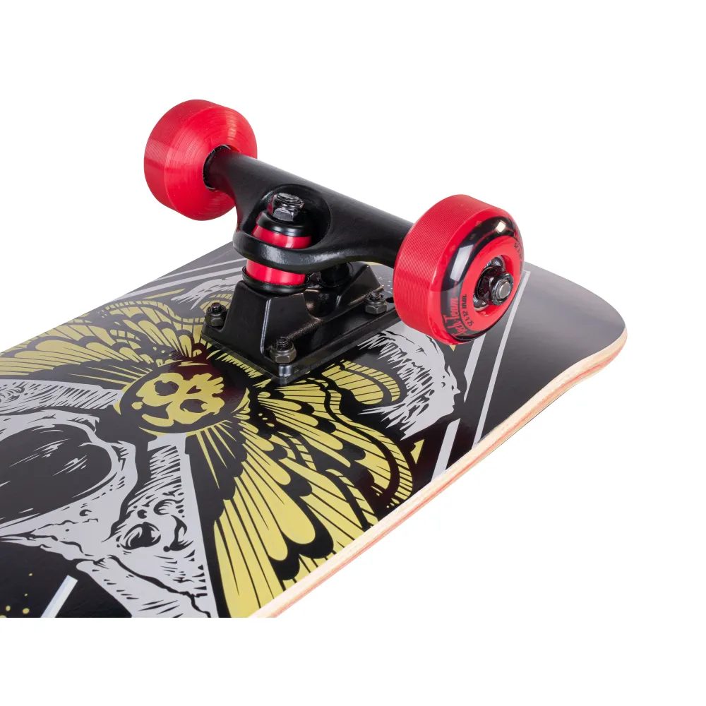Скейтборд Tech Team Elite череп – крутая модель по приемлемой стоимости ожидает отважного райдера. Техника рассчитана на пользователей от 5-летнего возраста, безопасная и комфортная. Может использоваться райдерами массой до 100 кг. Купить скейтбород выгодно, на практике оценить технические характеристики предлагает наш интернет-магазин.
