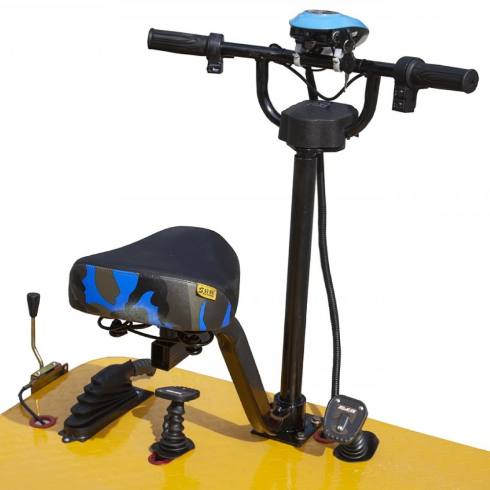 Платформенная тележка оснащена электродвигателем на 750 Вт. Способная развивать скорость до 25 км/час и преодолевать на одной подзарядке дистанцию до 30 км. Платформа оснащена ограничителями, благодаря которым исключено падение груза и другие форс-мажорные ситуации. Управление – простой – не требует особого обучение.