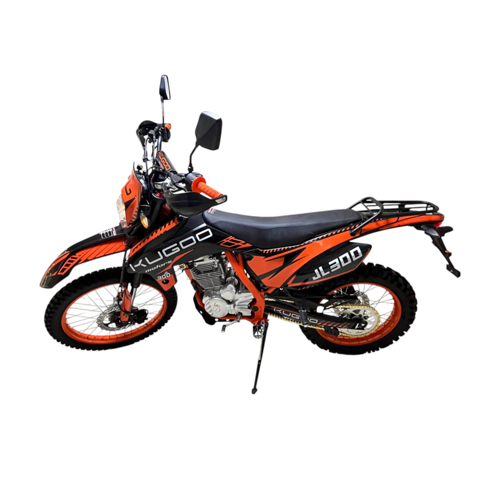 Если вы ищете надёжный бензиновый мотоцикл для динамичных поездок по пересечённой местности, Kugoo JL-300 — это выбор, который сочетает в себе высокую проходимость, простой и мощный двигатель, а также комфортную управляемость в любых условиях. Эта модель идеально подойдёт как для начинающих, так и для опытных райдеров, желающих испытать себя на настоящем эндуро.