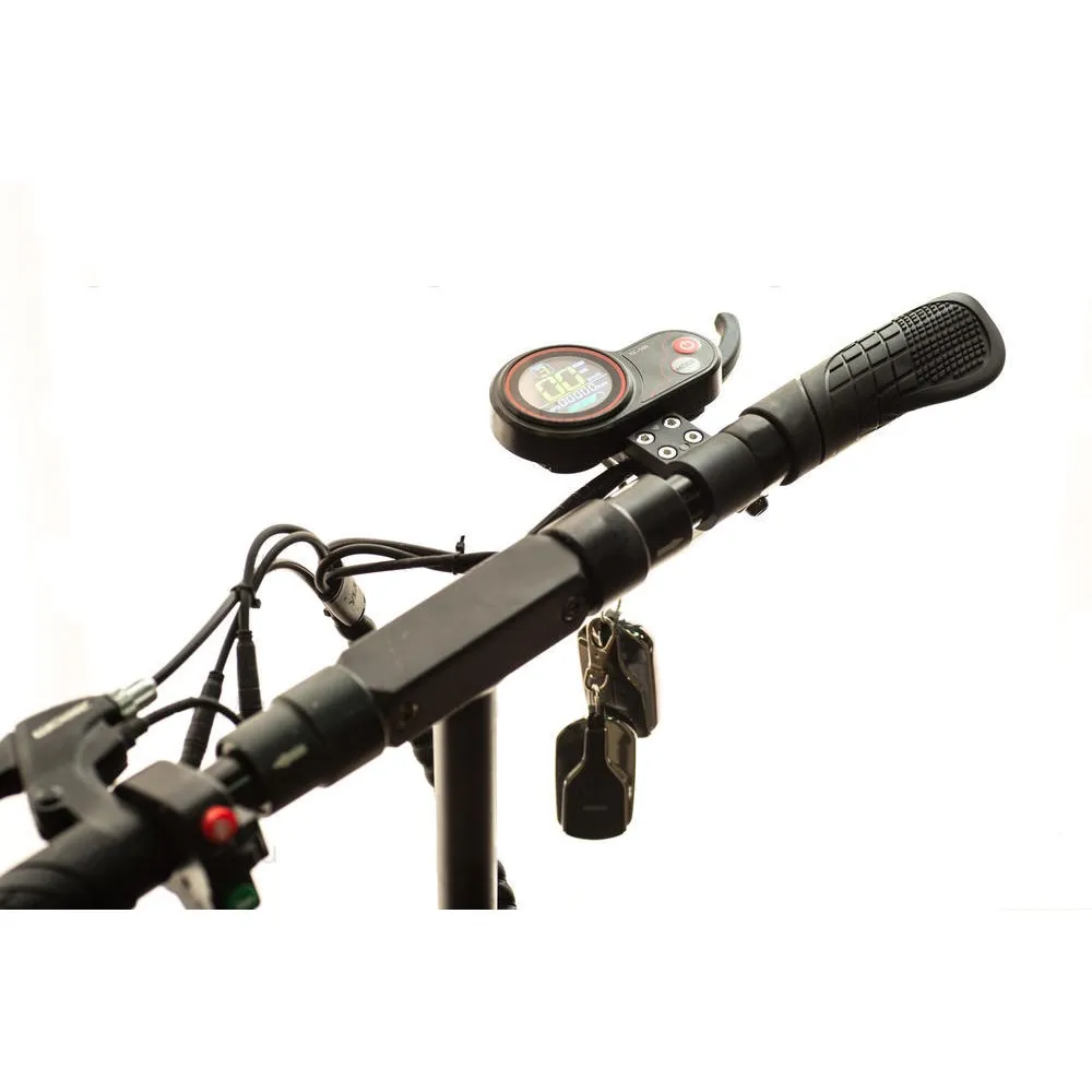 Kugoo MLD M4 11Ah (чёрный, с сиденьем) — надёжный электросамокат для города. Прочная алюминиевая рама выдерживает до 120 кг, а вес 20 кг делает его удобным для хранения и транспортировки.