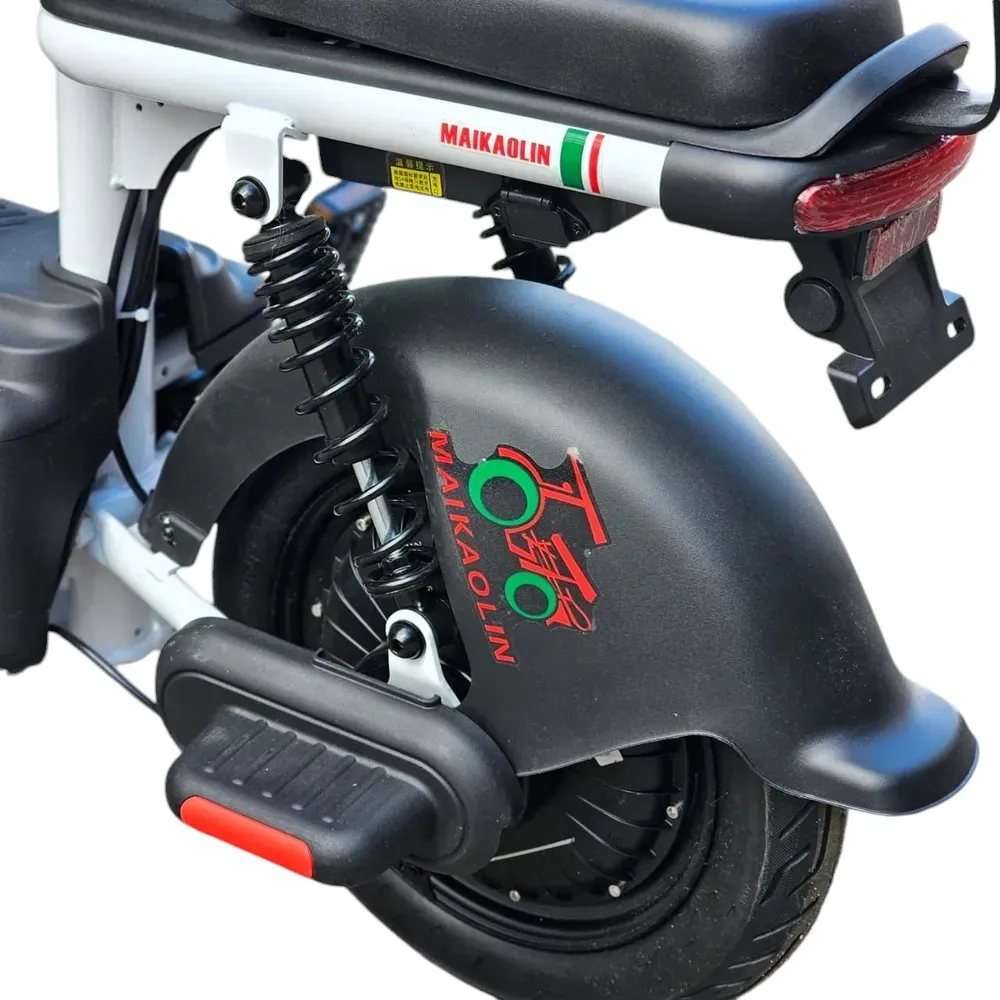 Диаметр колес 16x3.0 дюймов и литые диски гарантируют устойчивость и безопасность на дороге. Амортизационная вилка и задний пружинный амортизатор обеспечивают комфортную езду даже на неровных поверхностях. Нестандартный и стильный форм-фактор делает Maikaolin Candy настоящим привлекающим взгляды, а наличие передней корзины добавляет удобства для перевозки вещей. Уникальная особенность — наличие педалей, которые выручат в случае разрядки аккумулятора, делая каждую поездку уверенной и беззаботной.