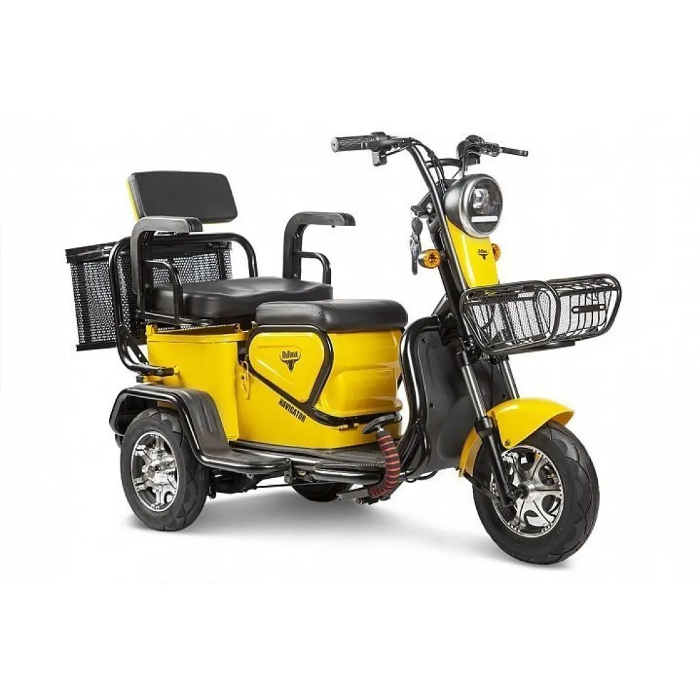 Трицикл Rutrike Навигатор желтый – элетротранспорт, представленный современным дизайном стал лидером продаж этого года. Визуально трицикд смотрится круто. Технические характеристики и дизайн подтверждают указанный факт. Купить трицикл по приемлемой стоимости, насладиться комфортом передвижения, понять, что такое отсутствие головной боли и проблем предлагает наш интернет-магазин.