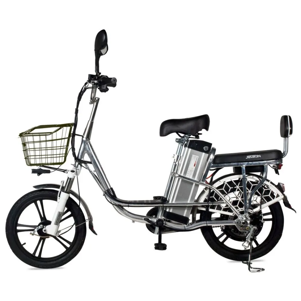 Велосипед Jetson Pro Max с электроприводом является непревзойдённой заменой личного и общественного транспорта. Его компактность и манёвренность позволяют с комфортом использовать его на самых загруженных улицах города, без особых проблем перевозить в транспорте, если понадобится, и хранить так, чтобы никогда не мешался. Алюминиевая рама велосипеда легкая и прочная. Она выдерживает до 200 килограмм, что позволяет перевозить пассажира и любые вещи, которые поместятся в корзину.