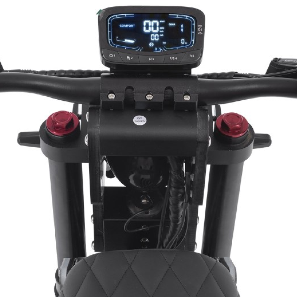 А ещё — гидравлические дисковые тормоза, пневматические колёса 13 дюймов, управление газом с ручки — всё, чтобы ты чувствовал не просто комфорт, а абсолютную уверенность.