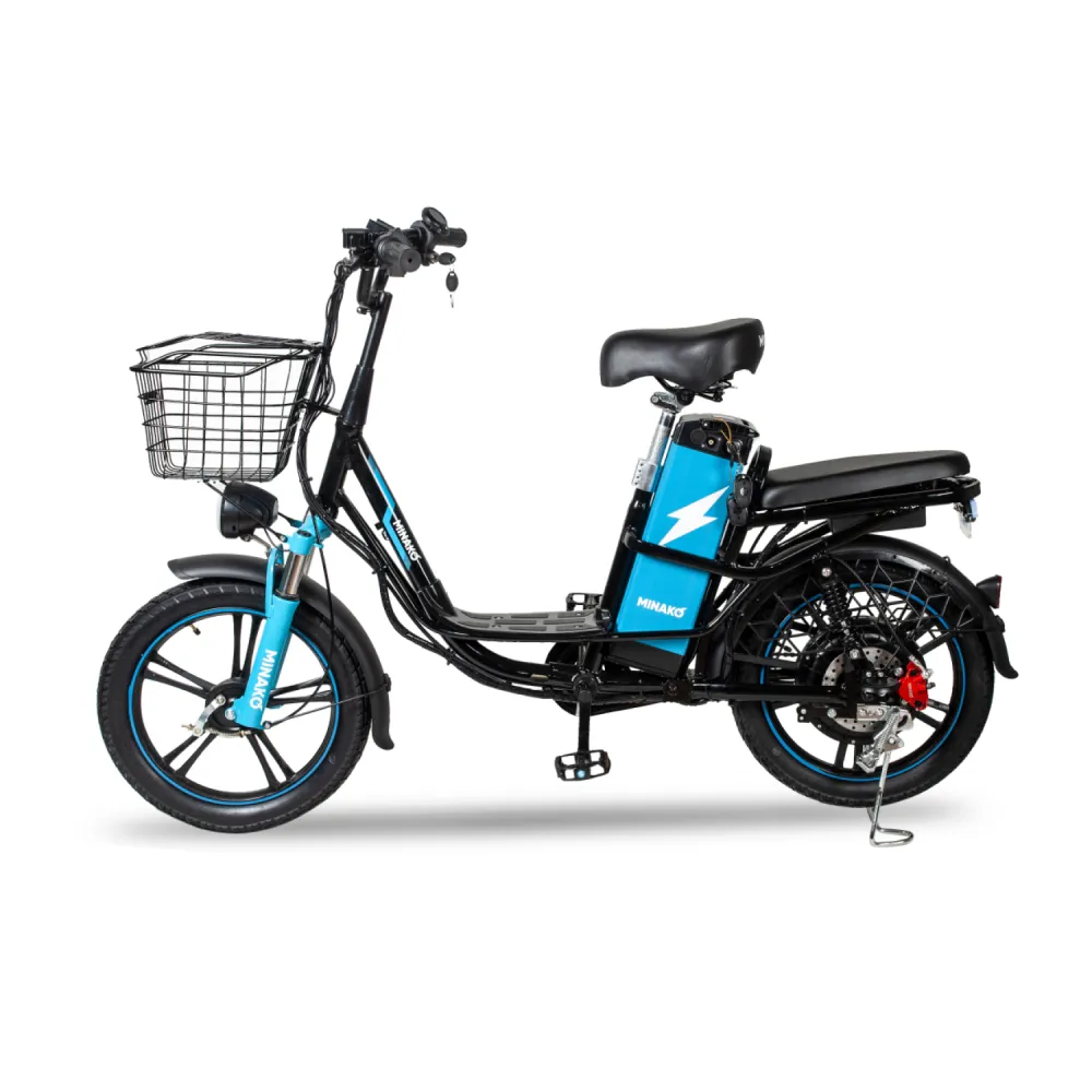 Встречайте Электровелосипед Колхозник Minako V8 Pro Black — ваш идеальный спутник для городских и загородных поездок. С мощным двигателем в 500W и батареей 60V12Ah, он развивает скорость до 50 км/ч, обеспечивая пробег до 45 км в режиме ассистента и до 25 км на чистой электротяге. Надежные тормоза: передние барабанные и задние гидравлические дисковые, гарантируют вашу безопасность. Для удобства и безопасности поездок, Колхозник Minako V8 Pro оснащен фарой, стоп-сигналом и поворотниками. А вместительная передняя корзина позволяет взять с собой все необходимое. Наслаждайтесь свободой передвижения с Электровелосипедом Колхозник Minako V8 Pro Black!