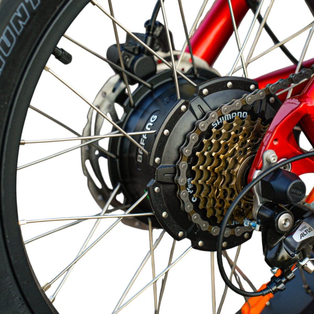 Двигатель: мощный бесщеточный мотор Bafang 1000 Вт с задним приводом обеспечивает отличную тягу и плавное ускорение.