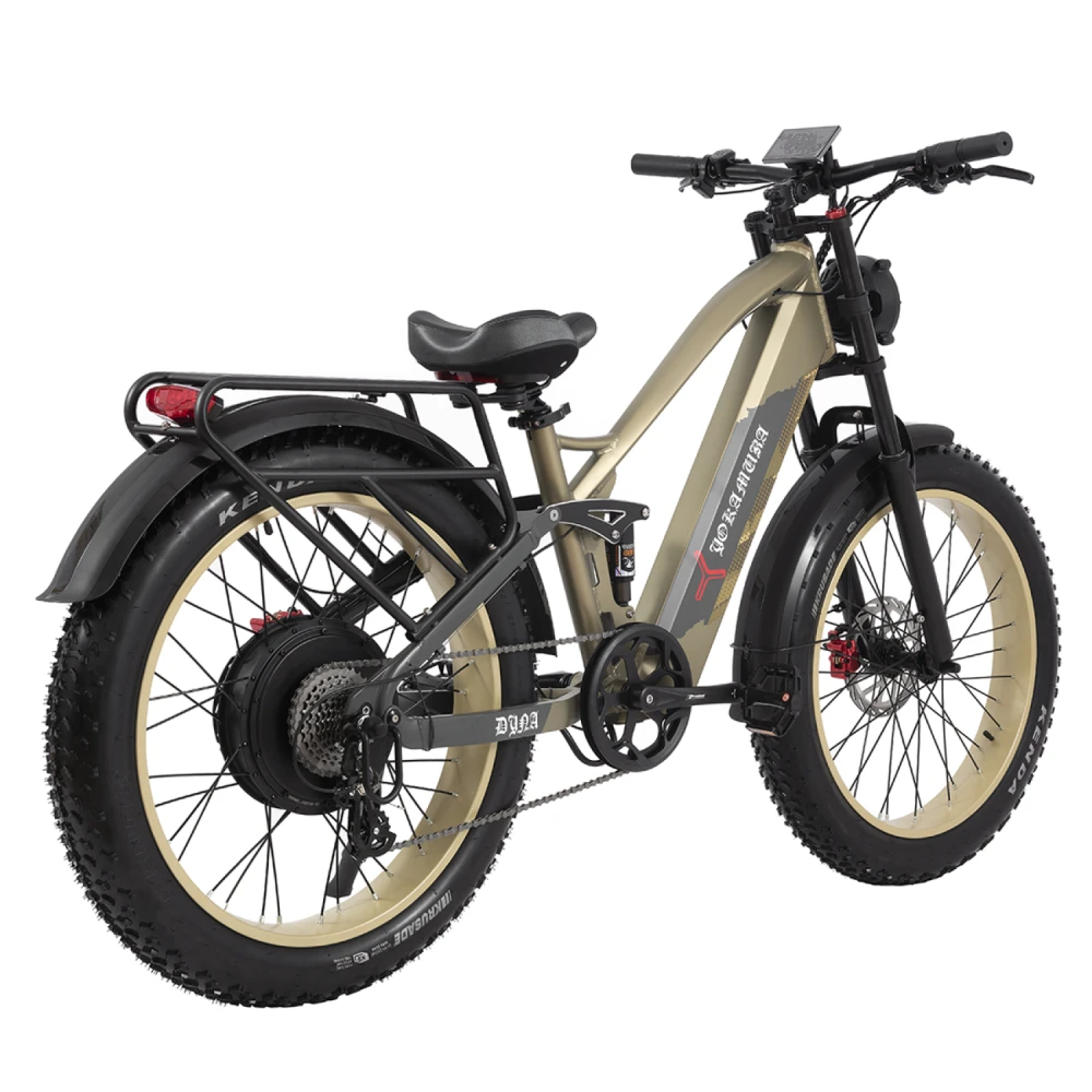 Ёмкий аккумулятор 52V / 30Ah даёт отличную автономность — до нескольких часов активной езды без подзарядки. Это идеальное решение как для города, так и для дальних маршрутов. Покрышки Kenda обеспечивают отличное сцепление с поверхностью, а 26-дюймовые колёса уверенно держат траекторию даже на сложном покрытии.