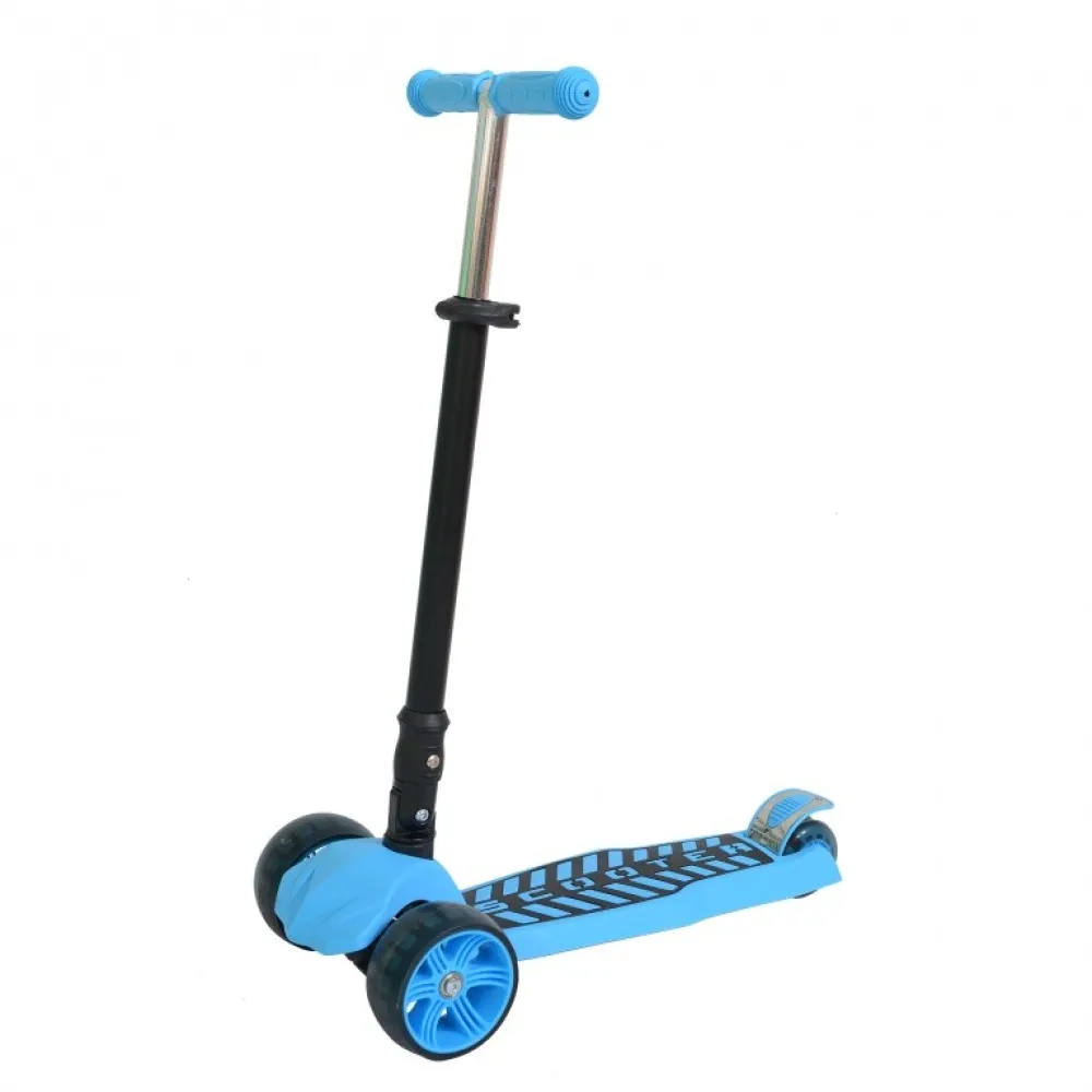 Управлять самокатом очень легко, наклоняя руль в нужную сторону. Ножной тормоз установлен на заднее колесо. С ним гарантируется моментальное торможение и безопасность катания. Колеса изготовлены из полиуретана, что обеспечивает их долговечность, делает движение плавным, смягчает неровности дороги. Также в них расположены светодиоды, которые ярко светятся при движении. За счет трех колес самокат очень устойчивый – он идеально подойдет для первого самоката малыша. Что касается размера колес, то диаметр передних составляет 120 мм, а заднего колеса – 90 мм.