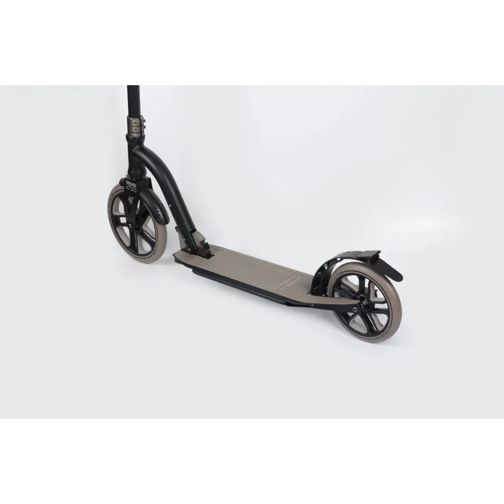 Алюминиевая дека – широкая, составляет 15см, рабочая поверхность – большая, составляет 35 см, позволяет установить две ступни одновременно. Поверхностный материал предупреждает скольжение, минимизирует риск падения ездока.