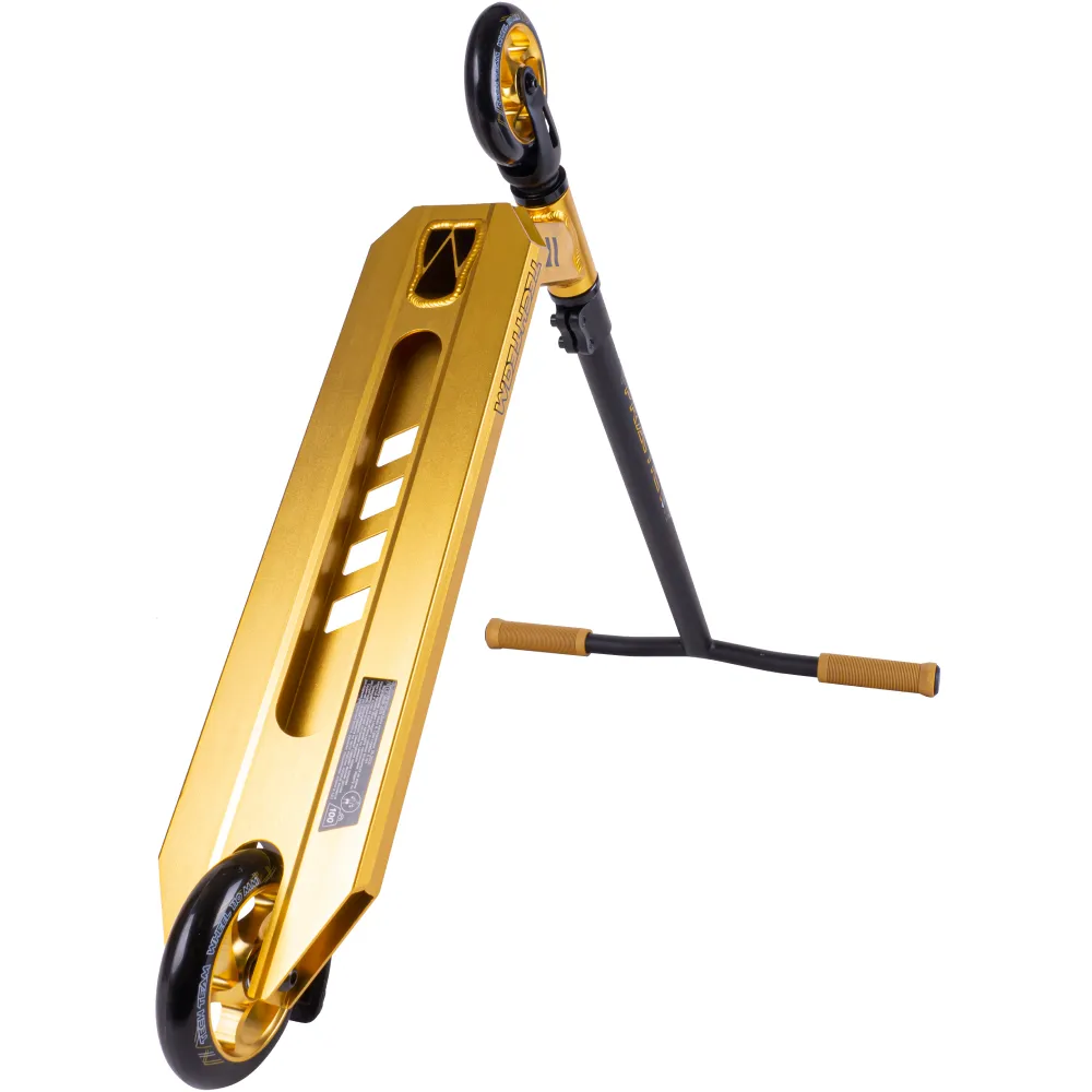 Самокат предназначен для ездоков начального уровня. Рулевая часть изготовлена из хроммолибденовой стали. Ширина руля удобная для захвата - составляет 51 см, по высоте – 57 см. Рулевая часть надежно зафиксирована 2 болтами. Исключение непредвиденных действий при выполнении трюков обусловлено удлиненными дышащими прорезиненными грипсами и нескользящей шершавой декой. Наличие выреза облегчает вес основного изделия. Полиуретановые 110-мм колеса с подшипниками ABEC 9 и фирменная тормозная система из нейлона+сталь обещают отличный накат и своевременность торможения. В комплектацию с техникой входят фирменные наклейки и гаечные ключи. Если вас заинтересовал самокат, вы нацелены на совершенствование спортивных достижений, предлагаем приступить к оформлению заказа прямо сейчас.