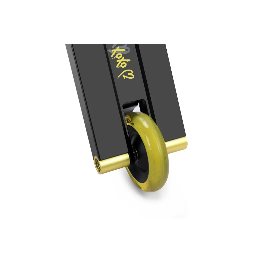 Колесная часть представлена алюминиевыми дисками с параметрами жесткости 88А, имеет диаметр 110 мм, допускает езду по городской местности и парковой зоне. Технические характеристики самоката подходят для новичков, а также более продвинутым пользователям с параметрами роста 168-185 см.
